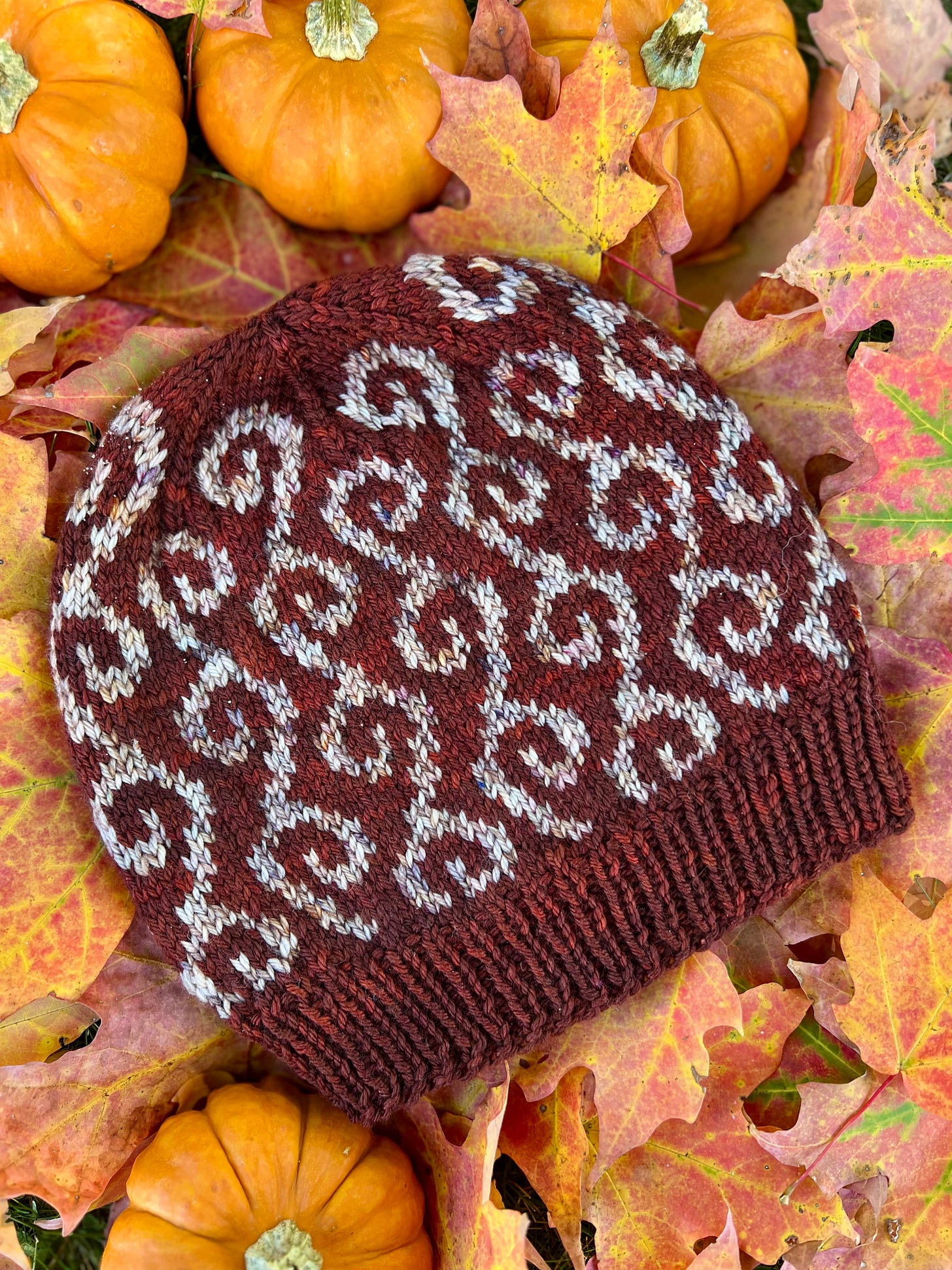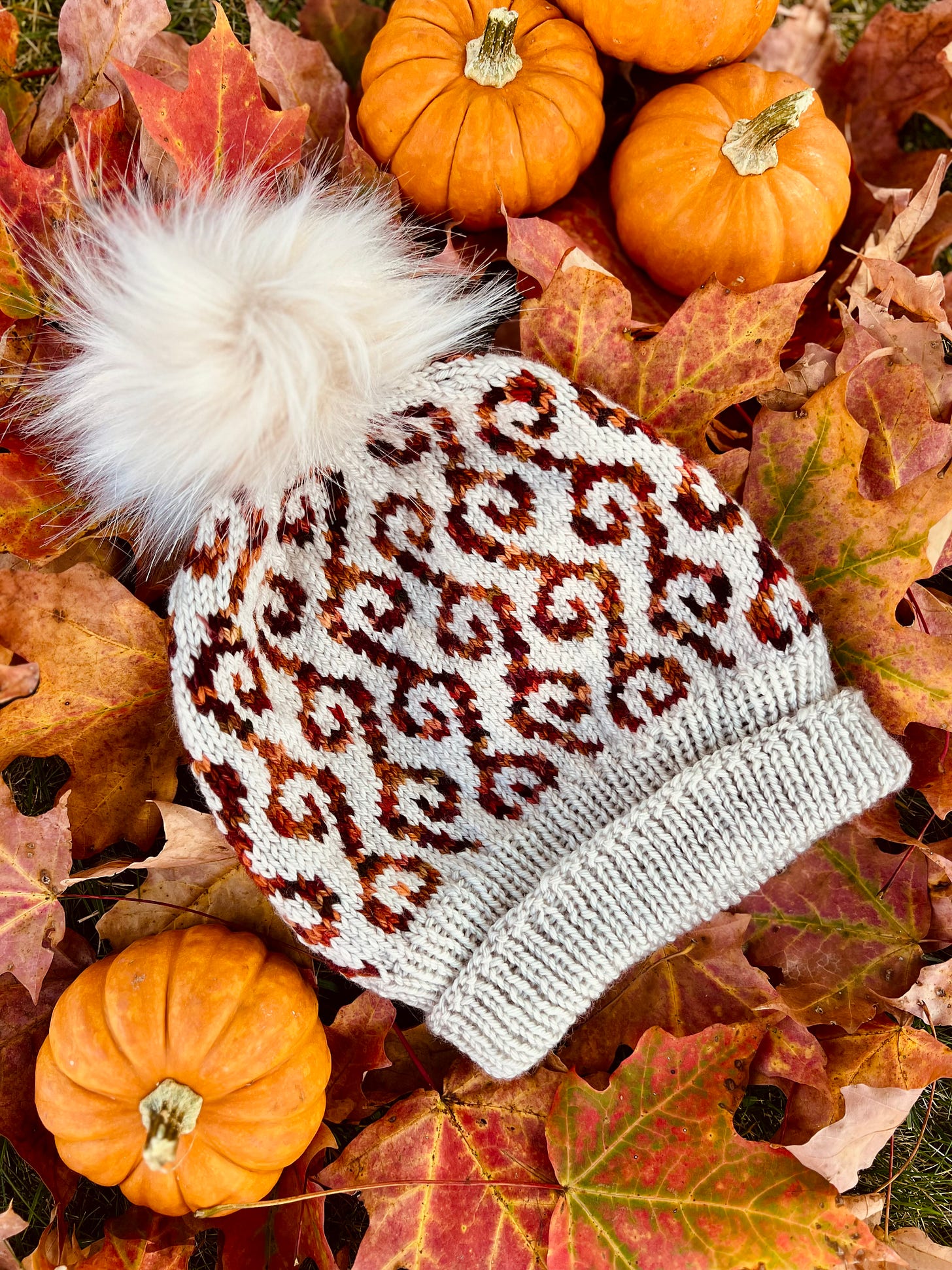 Meet the Hot Cider Hat with its swirls of steamy color rising up from your mug: